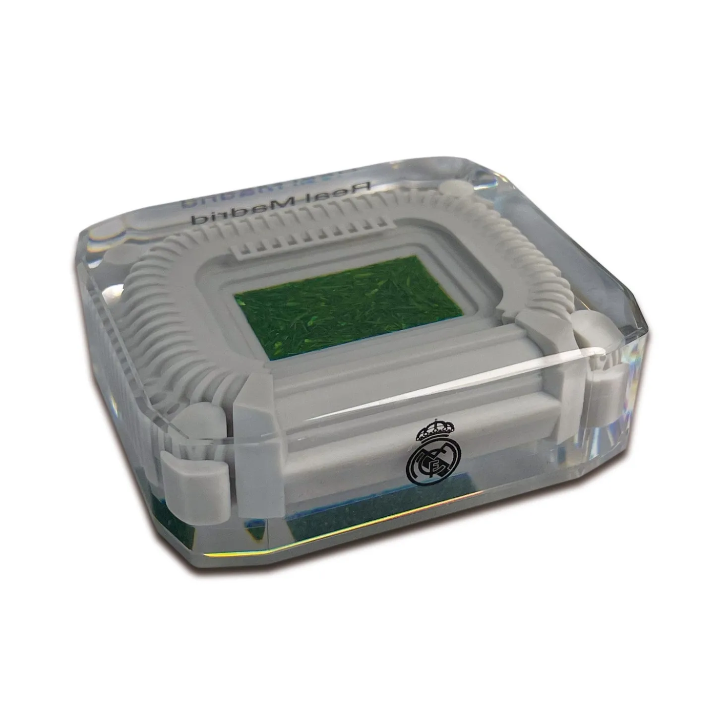 Cette boîte contient de l’herbe du stade Santiago Bernabéu. Un échantillon authentique et réel de l’endroit qui a été le témoin des grandes victoires de Real Madrid dans les compétitions les plus importantes du football mondial tout au long de l’histoire.